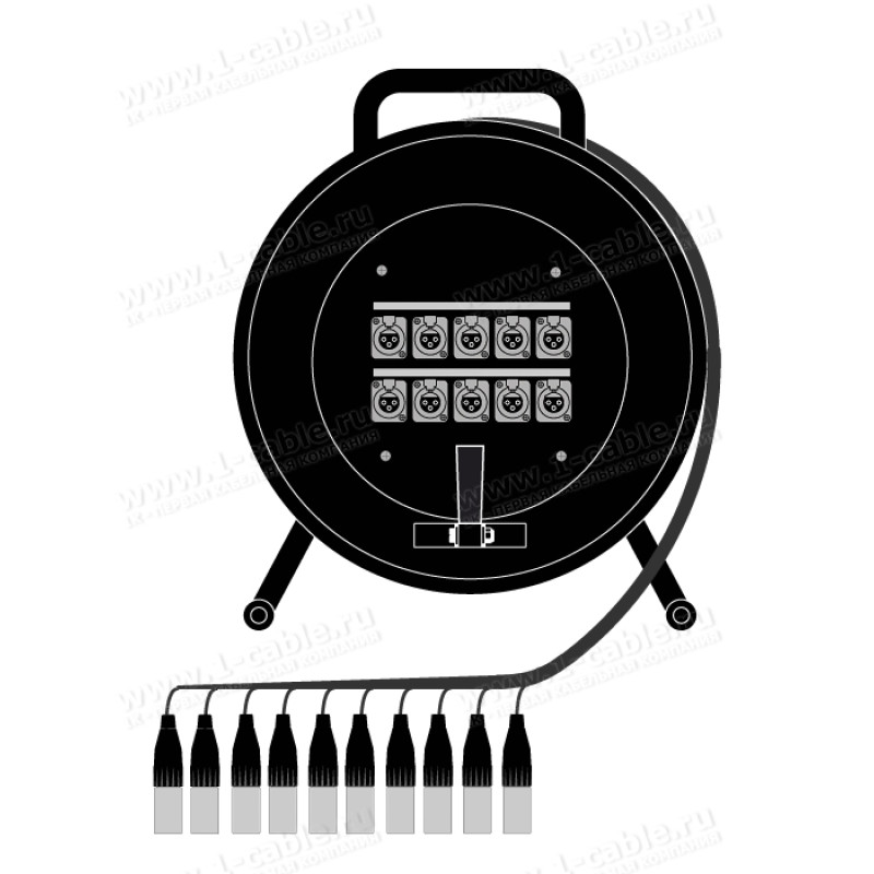 8, 10, 16 та 24-канальні системи виконані на базі еластичного аудіо мультикора PolyWIRE (KLOTZ a-i-s). З одного боку мультикор зафіксований у котушці, кожен кабель розпаяний на панельний роз'єм XLR D-серії, вмонтований у корпус котушки, з іншого боку мультикор закінчується розгорнутою багатоканальною кабельною групою з роз'ємами XLR, промаркованими поканально. Роз'єми на котушці промарковані відповідно до симетричних звукових каналів. Маркувальна планка з пластиковою захистом встановлена безпосередньо над роз'ємами звукових входів-виходів системи. |
