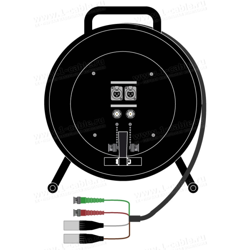 Комбінована 4-х канальна система (2 відео / 2 аудіо) дозволяє вирішити задачу комутації аналогових або цифрових SDI/HDTV відеосигналів та аналогових аудіосигналів на знімальних майданчиках. Система може бути використана як всередині студій, так і на виїзних роботах. Система виконана на базі еластичного мультикора AV-Composite (KLOTZ a-i-s). З одного боку, мультикор зафіксований у котушці, всі аудіо кабелі розпаяні на панельні роз'єми XLR D-серії, на відеокабелі встановлені панельні роз'єми BNC. Роз'єми вмонтовані в корпус котушки. З іншого боку мультикор закінчується розгорнутою кабельною групою з роз'ємами XLR та BNC, промаркованими поканально. Роз'єми на котушці промарковані відповідно до відео та звуковими каналами. Маркувальна планка з пластиковою захистом встановлена безпосередньо над панельними роз'ємом системи.