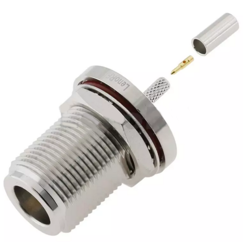 Матеріали та покриття конектора N (гніздо) female Bulkhead для RG316: