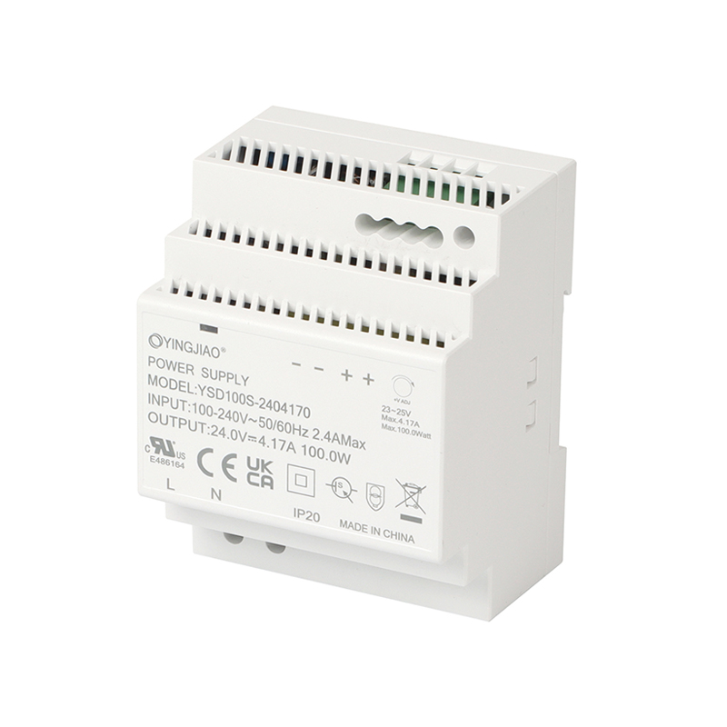 Блок живлення серії YSD100S 100 W для кріплення на DIN-рейку — високоефективний імпульсний блок живлення у модульному корпусі Step-Shape, призначений для живлення промислових контролерів, систем автоматизації, телекомунікаційного обладнання, охоронних систем та інших відповідальних навантажень. Забезпечує стабільну вихідну напругу при коливаннях мережі та характеризується підвищеною надійністю для безперервних режимів роботи. Основні характеристики Номінальна потужність: 100 Вт Вхідна напруга: 85…264 В AC або 120…373 В DC Вихідна напруга (залежно від моделі): 12 В / 15 В / 24 В / 48 В DC Тип монтажу: DIN-рейка 35 мм Корпус: Step-Shape — каскадний компактний дизайн ККД: до 88 % Захисти: коротке замикання (SCP), перевантаження (OLP), перенапруга (OVP) Охолодження: природна конвекція, без вентиляторів Застосування системи автоматизації та керування виробництвом DIN-модульні електричні щити охоронні та пожежні системи, відеоспостереження телекомунікаційне та мережеве обладнання IoT-пристрої, периферійні модулі, контролери Переваги Компактний корпус Step-Shape — економія місця на DIN-рейці Висока стабільність вихідної напруги у промислових мережах Множинні системи захисту для підвищеної безпеки Безшумна робота завдяки охолодженню конвекцією Низьке споживання у режимі холостого ходу Будова корпус з негорючого пластика UL94-V0 гвинтові клемні колодки входу та виходу модульний ступінчастий форм-фактор вбудовані електронні схеми захисту Технічні параметри (для серії 100 W) Робоча температура: −20…+70 °C (derating вище +50 °C) Вологість: 5…95 % без конденсації Ізоляційна напруга: 3 кВ AC EMC відповідність: EN 55032, EN 61000-4-2…6 Габарити: 105 × 70.2 × 58.4 мм