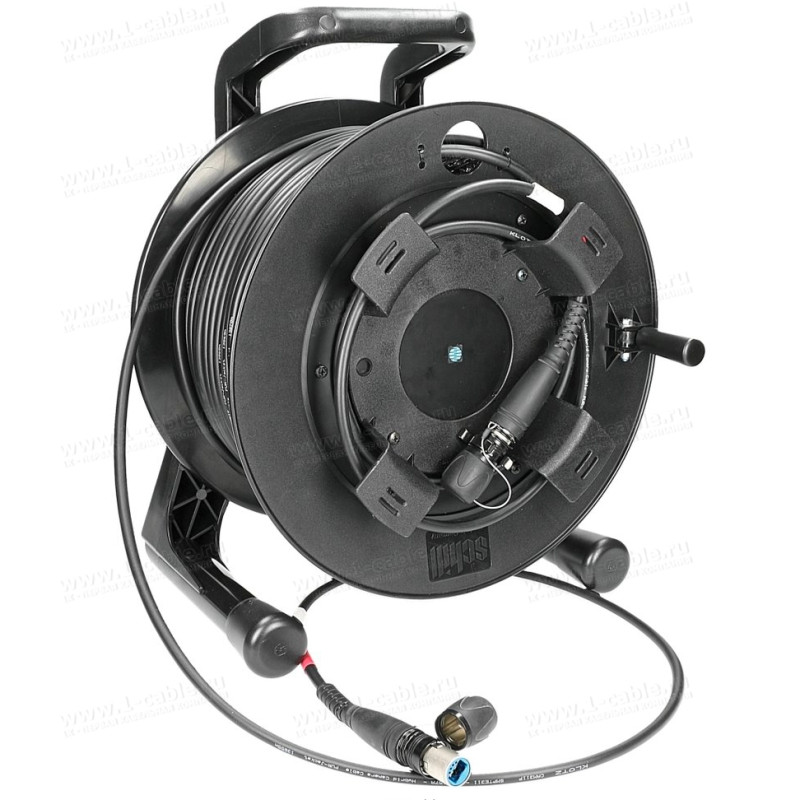 З одного боку кабель зафіксований, і випуск кабелю намотаний на окремий розділ котушки. Основна частина кабелю зібрана на більшому розділі котушки. На кабель CAM311P встановлені гібридні роз'єми OpticalCON DUO в захисній оболонці, з захисними ковпачками контактної групи.