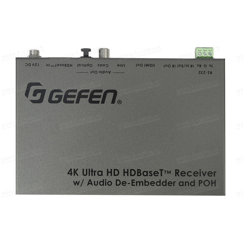 Приймач сигналів HDMI 2.0 роздільною здатністю до 4096x2160 @30 Гц при YUV 4:4:4 (3840x2160 @60 Гц при YUV 4:2:0), 3D з підтримкою HDCP2.2/1.4, EDID. Приймає також сигнали RS-232 (3-пін Phoenix), двонаправленого ІК (2х mini Jack 3.5 мм) з витої пари кат.5e з двонаправленим POH, технологія HDBaseT 2.0. Має можливість виділення аналогового (mini Jack 3.5 мм) і цифрового аудіо S/PDIF (TOSLINK і RCA). Підтримка ПЗ Gefen Syner-G.
