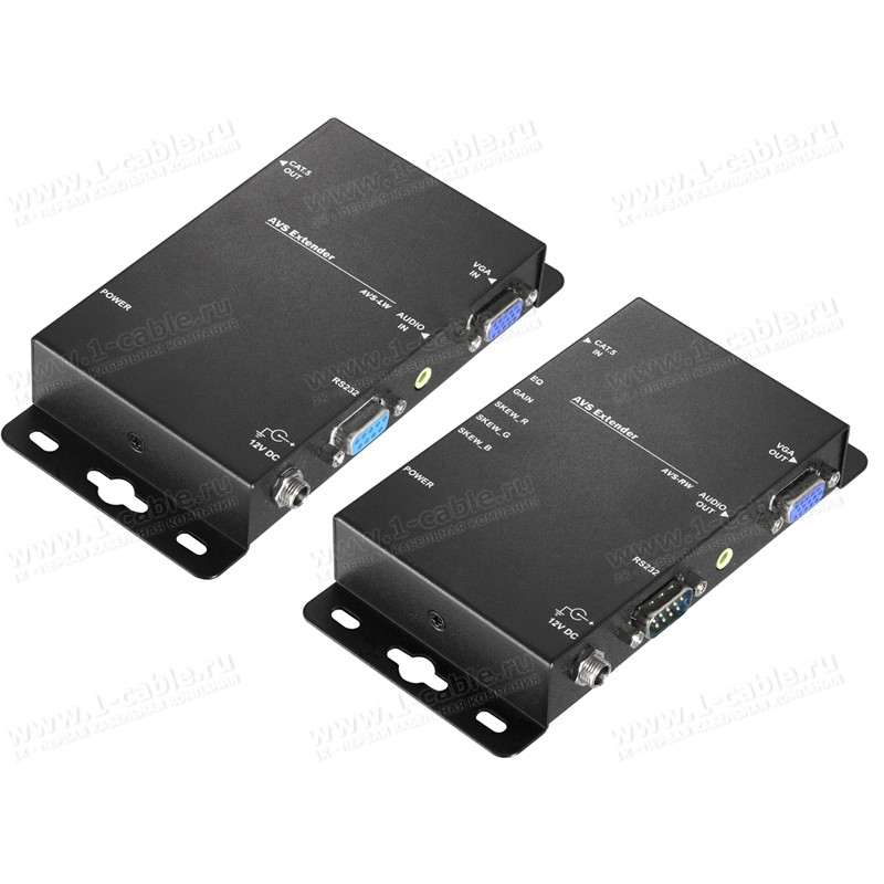 Подовжує лінію підключення VGA зі стереозвуком з управлінням по RS-232 на відстань до 300 метрів від джерела сигналу