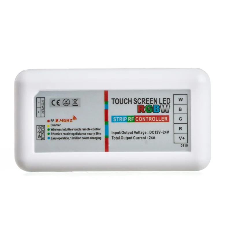У пам'яті цього RGB контролера залишається остання програма, що застосовувалася до виключення живлення. Ви завжди зможете правильно настроювати відтінок кольору світіння за допомогою сенсорного кільця на пульті. Даний контролер йде в комплекті з сенсорним радіо пультом білого кольору. Іншими словами, даний контролер — це якісний аксесуар для регулювання кольору та режиму світіння led RGB стрічки.