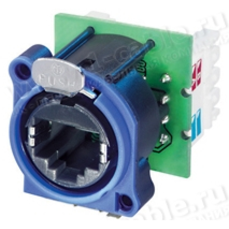 Панельний роз'єм гніздо RJ45 з фіксацією контактів IDC 110. Посадка А-типу передбачає установку цього роз'єму в стандартні панелі для XLR та інших типових інтерфейсів. Максимальна товщина панелі – 3 мм. У комплекті постачаються 2 крепіжних гвинти.