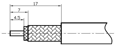Центральная жила может быть запаяна или обжата (шестигранник 2,54 мм / 0.100").