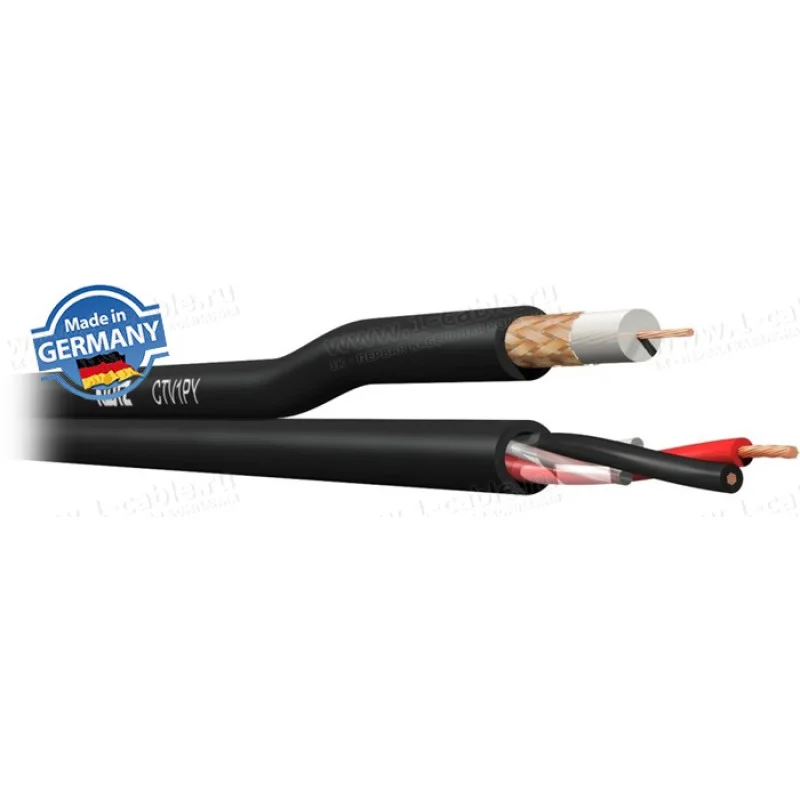 Этот комбинированный кабель разработан специально для использования в системах наружного наблюдения. Он позволяет передавать композитный видео сигнал от камеры и одновременно обеспечивает питание (два проводника, 2 х 0.75 мм²). Конструктивно видео кабель и провода питания выполнены раздельно, каждый в отдельной оболочке, что удобно для монтажа и снижает уровень электромагнитных помех. Таким образом, качество видео сигнала гарантированно сохраняется даже при очень больших расстояниях.