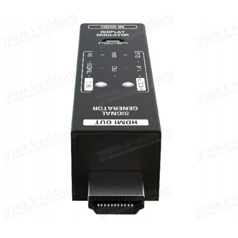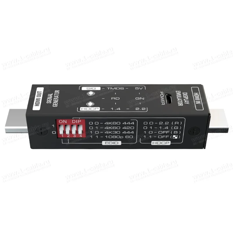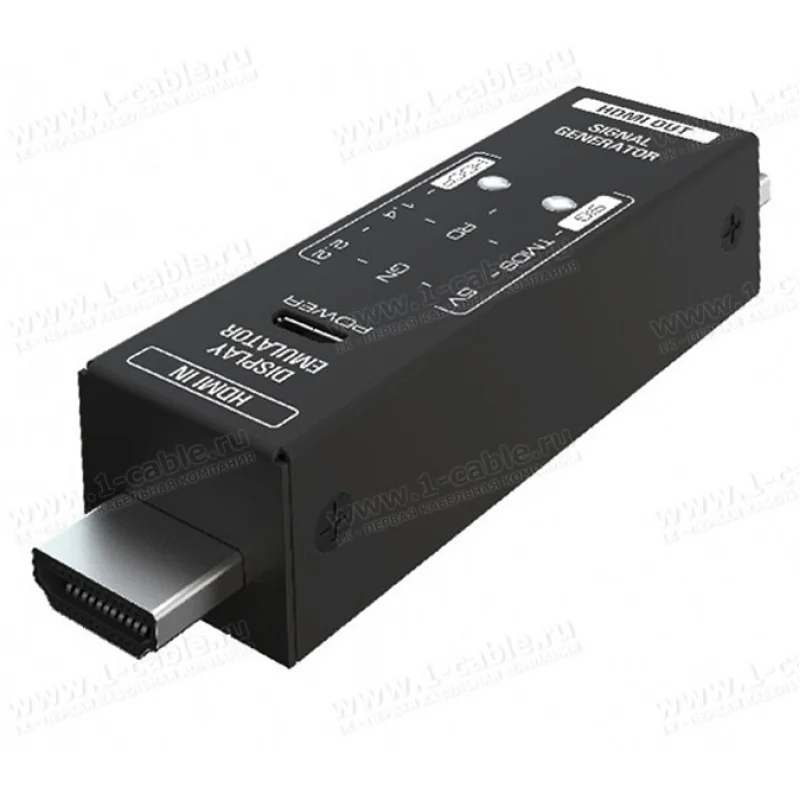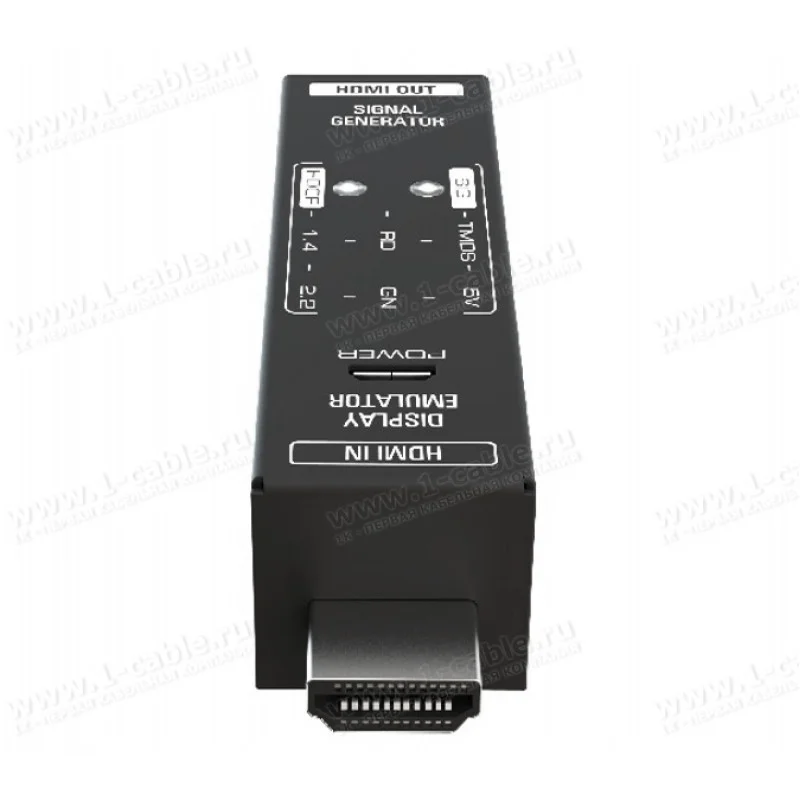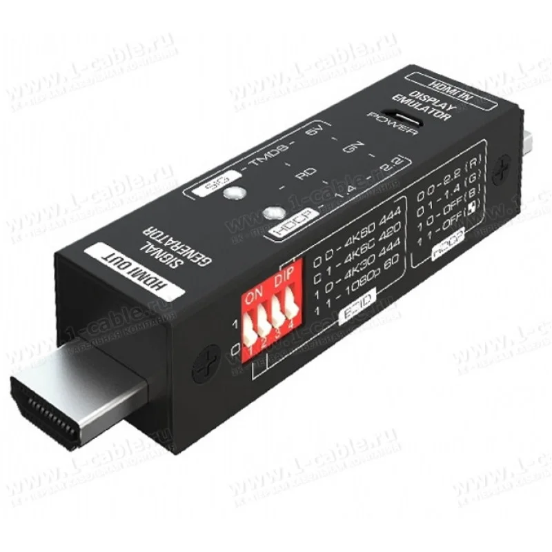 Портативный миниатюрный генератор сигналов HDMI объединяет в компактном корпусе две функции: сам генератор и эмулятор дисплея (анализатор сигналов). При работе в качестве генератора сигналов он может генерировать 4 типа тестовых сигналов с максимальным разрешением до UltraHD 4K @60 Гц /Y'CbCr 4:4:4, а также может анализировать контент HDCP. Для управления режимами имеется 4-х позиционный DIP-переключатель.