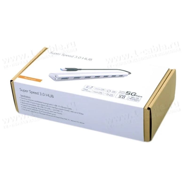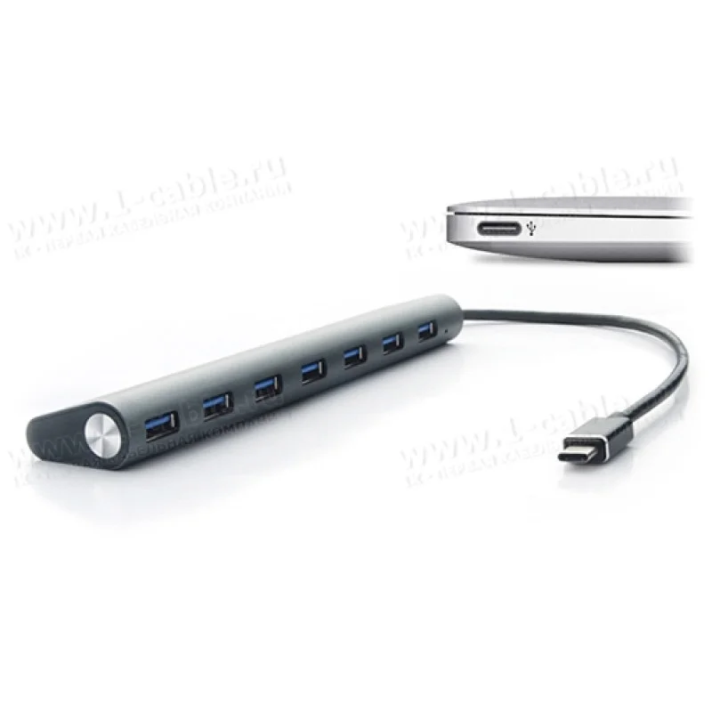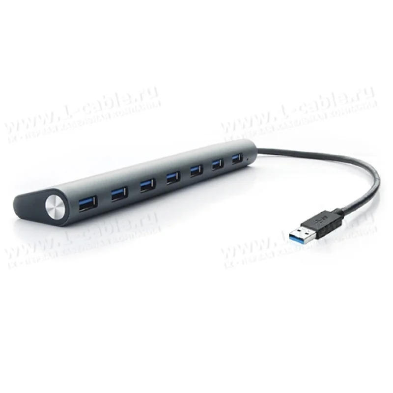 Позволяет подключить до семи устройств USB спецификации 3.0. Обеспечивает передачу данных со скоростью до 5 Гбит/с. Каждый порт концентратора может использоваться для зарядки мобильных устройств. Поставляется с внешним источником питания.