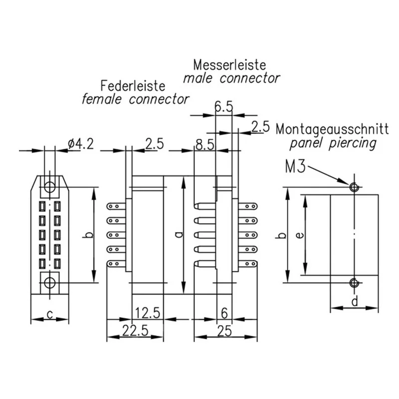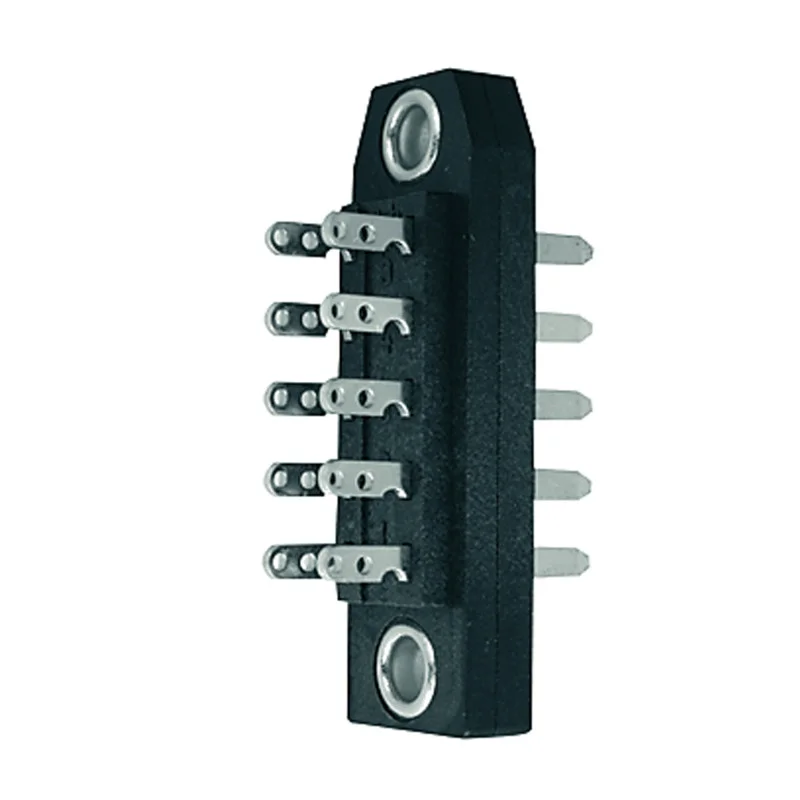 Многоконтактные разъемы стандарта DIN 41 618 и DIN 41 622 выпускаются с плоской контактной группой и обеспечивают жесткое и надежное электрическое соединение. В большинстве случаев они используются в приборных соединениях с необходимостью многократной коммутации. Кабельные разъемы представлены с металлическими или пластиковыми корпусами и соответствующими кодам заказа запорных устройств.