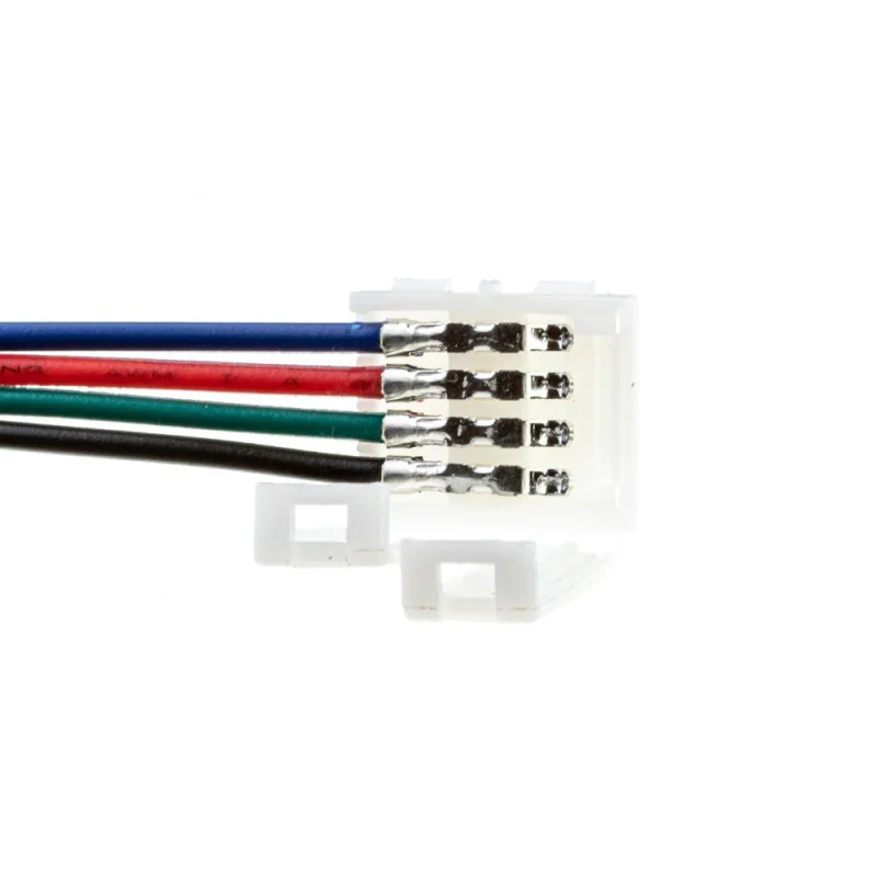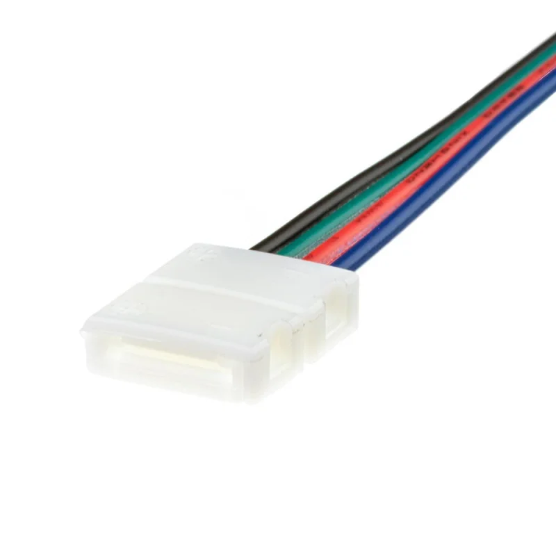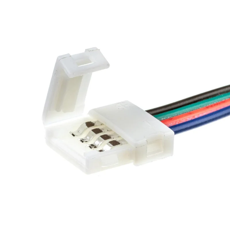 Під'єднується led стрічка з допомогою особливих пластмасових затискачів. Дані з'єднувачі потрібні для швидкого кріплення діодні стрічки. Це може бути стрічка SMD 3528, SMD 2835 або SMD 4040. Представлений з'єднувач вживають для RGB 10 мм.