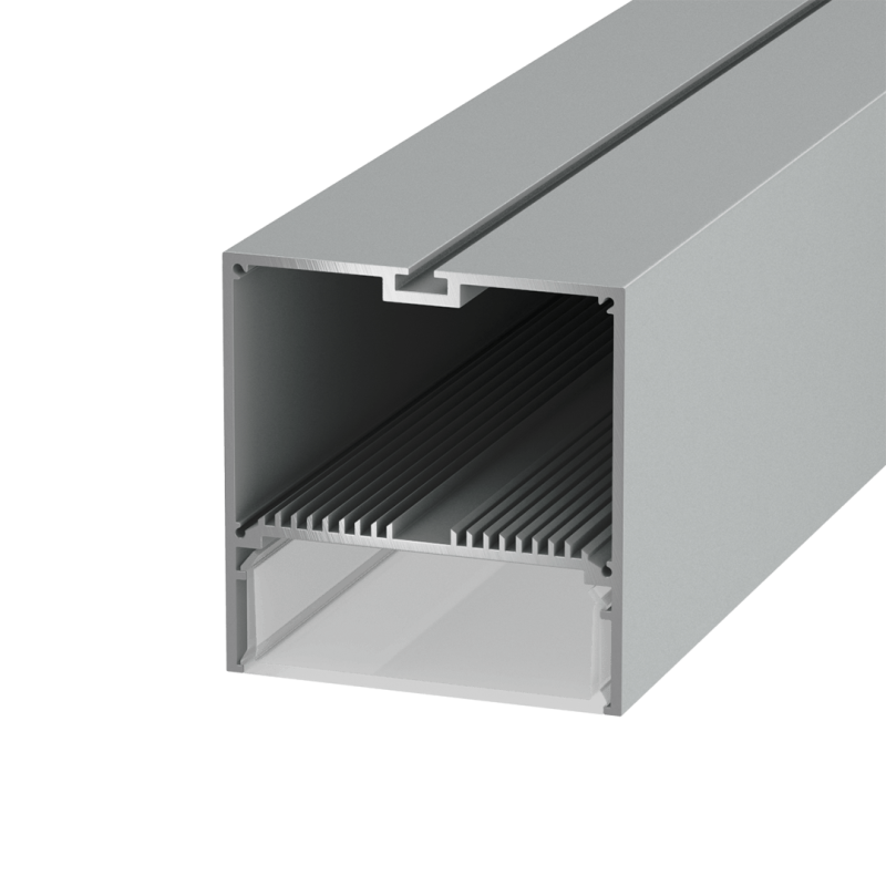LED профиль LS4970 характеризуется наличием ниши, в которую можно поместить компактный блок питания или трасформатор. Кроме того на верхей части профиля есть специальный паз, в который можно установить подвесное крепление - тросовый подвес, который можно приобрести отдельно. Стоит отметить, что поверхность профиля, на которую будет монтироваться лента, с внешней стороный имеет ребра, выполняющие функцию радиатора для лушего теплоотвода.