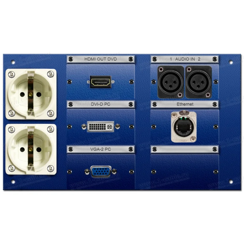 В конструкции каждой панели предустановленно по два силовых разъема стандарта SCHUKO для подключения питания приборов.