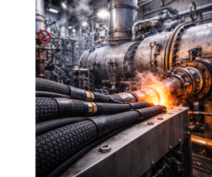 На бурових, насосних та компресорних станціях обплетення захищає лінії керування та живлення в умовах різких температурних стрибків, постійних вібрацій та контакту з ПММ. HFG витримує забруднення паливом, охолоджувальними рідинами та гідравлікою, зберігаючи герметичність і форму навіть при тривалій експлуатації в полі.