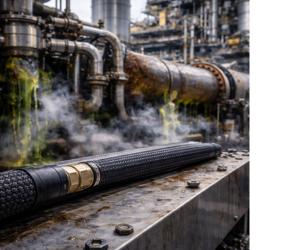 На бурових, насосних та компресорних станціях обплетення захищає лінії керування та живлення в умовах різких температурних стрибків, постійних вібрацій та контакту з ПММ. HFG витримує забруднення паливом, охолоджувальними рідинами та гідравлікою, зберігаючи герметичність і форму навіть при тривалій експлуатації в полі.